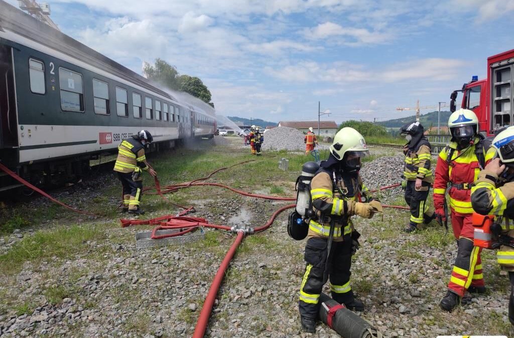 Juni 3, 2021 Ausbildung Anlässlich des Weiterbildungskurses des Bahnstützpunkts in St. Gallen wurde die Zusammenarbeit zwischen der Stützpunktfeuerwehr und dem SBB-Lösch- und Rettungszug geübt.